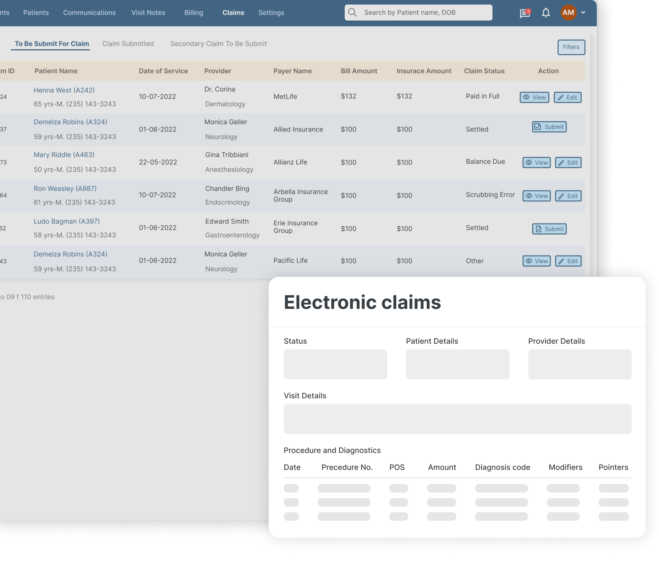 - Patient Claim Management: The procedure of managing patient claims for medical services, comprising verifying insurance coverage, submitting claims, and handling denied claims.