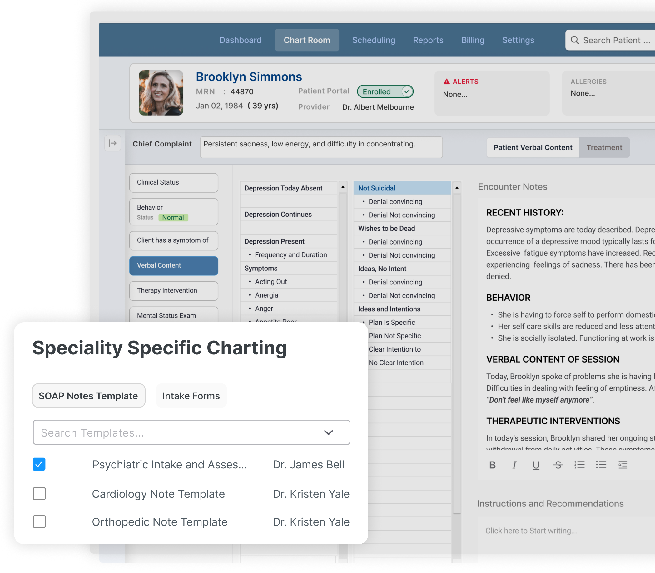 Build custom healthcare software specific to your specialty practice with unique dashboards, templates, and functionality.