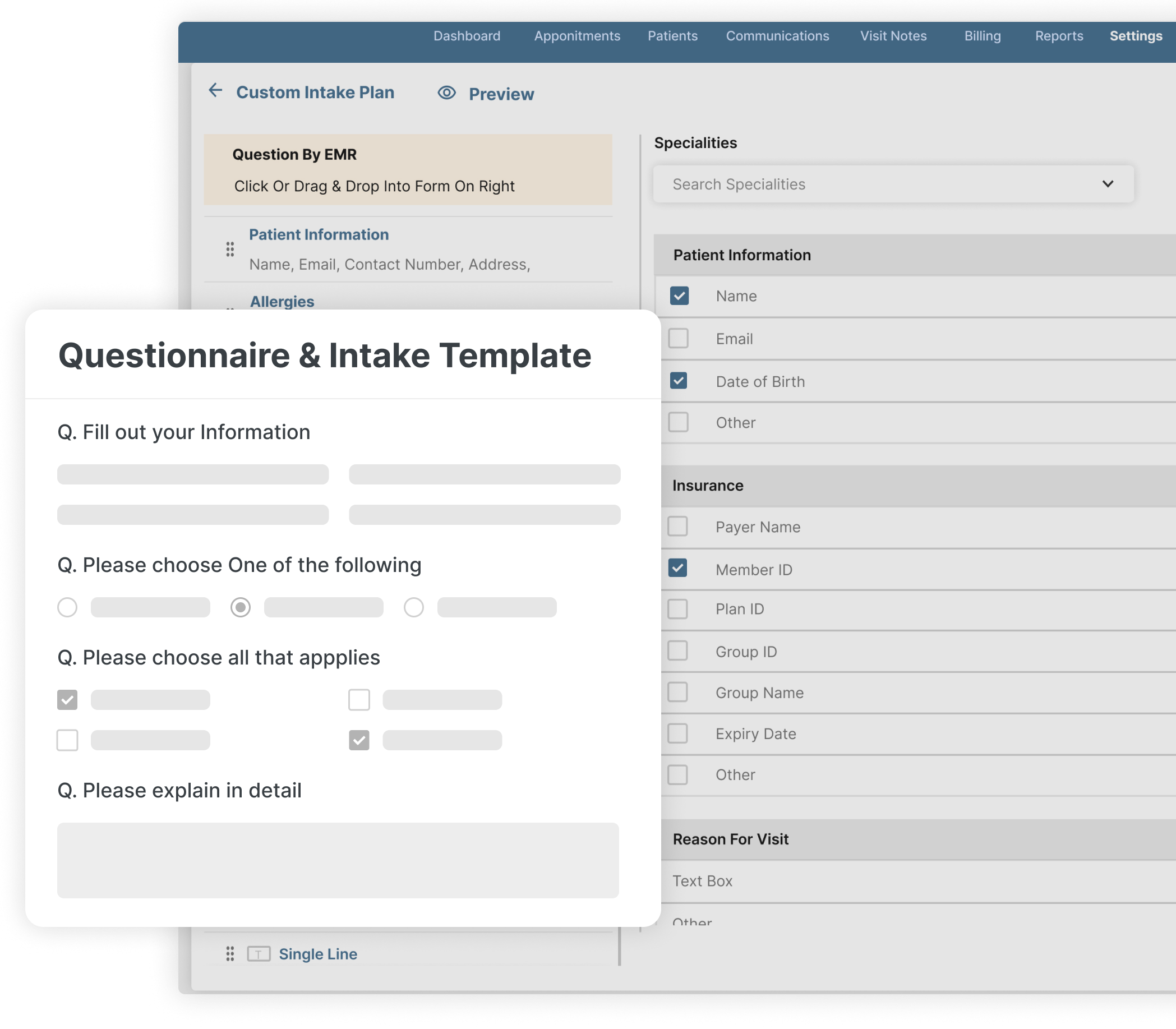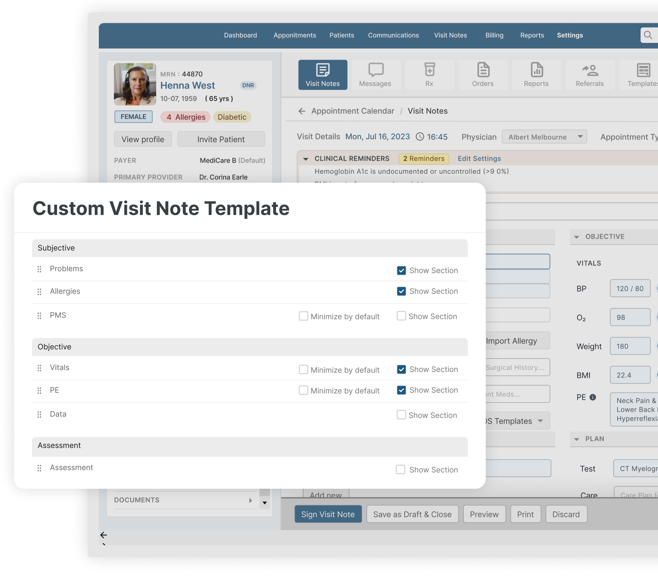 Custom build your practice management software dedicated to your practice specialty with dashboards, templates, and functionality.