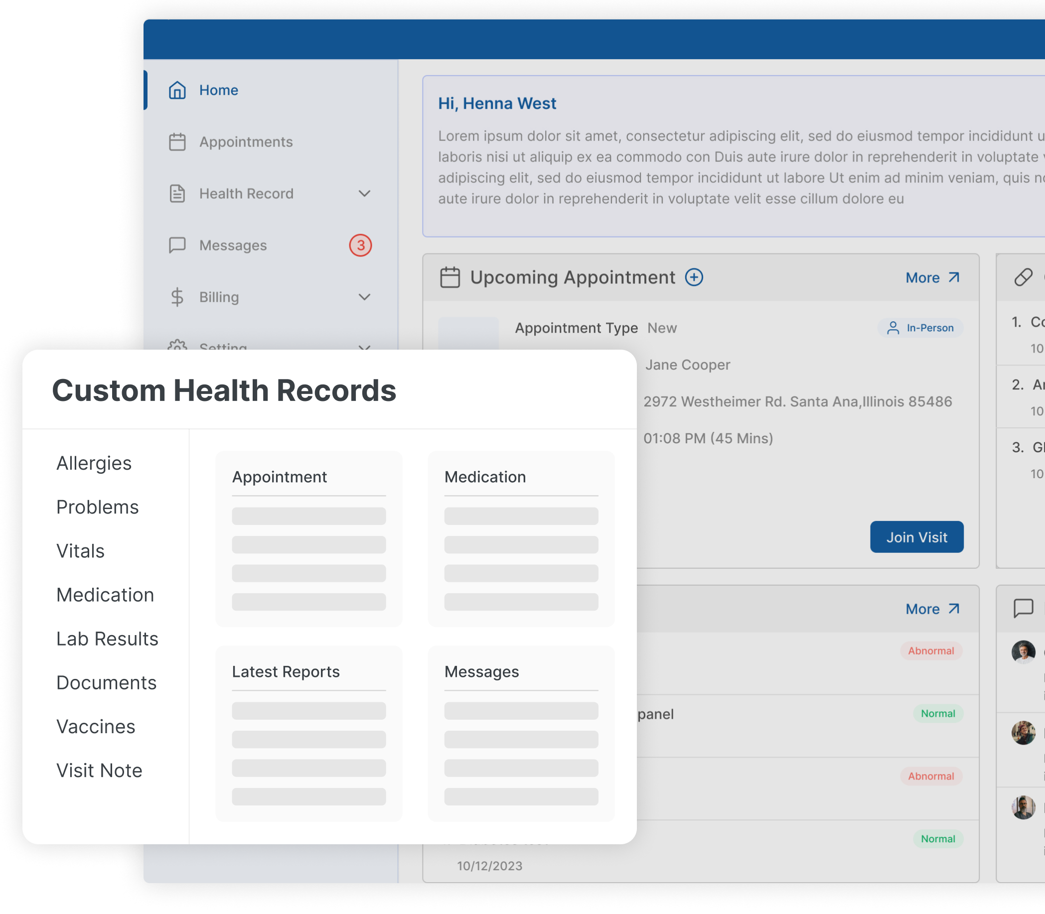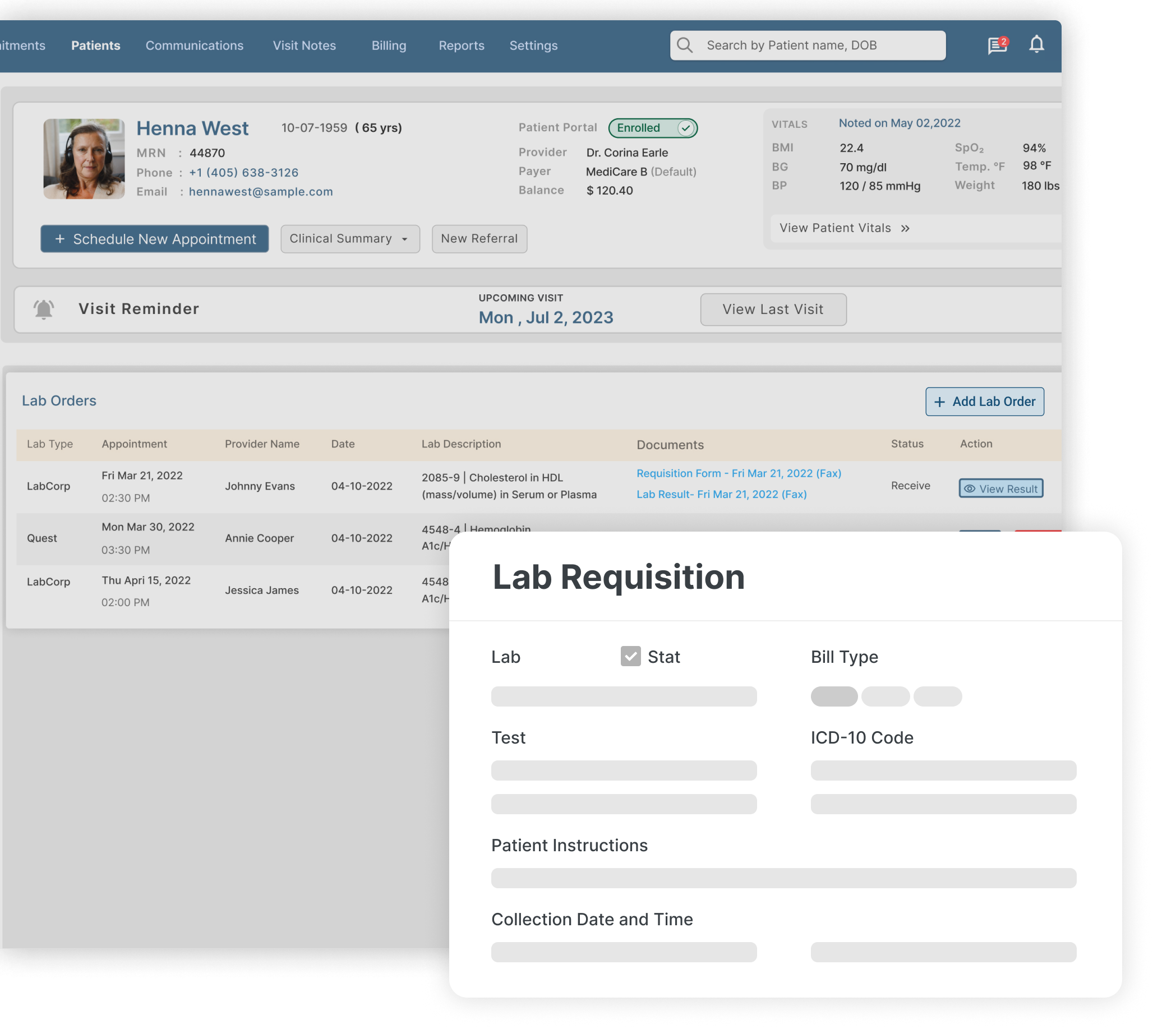 A complete virtual healthcare experience with third-party integrations to enable important healthcare services, telemedicine, RPM device connectivity, lab, radiology, etc.